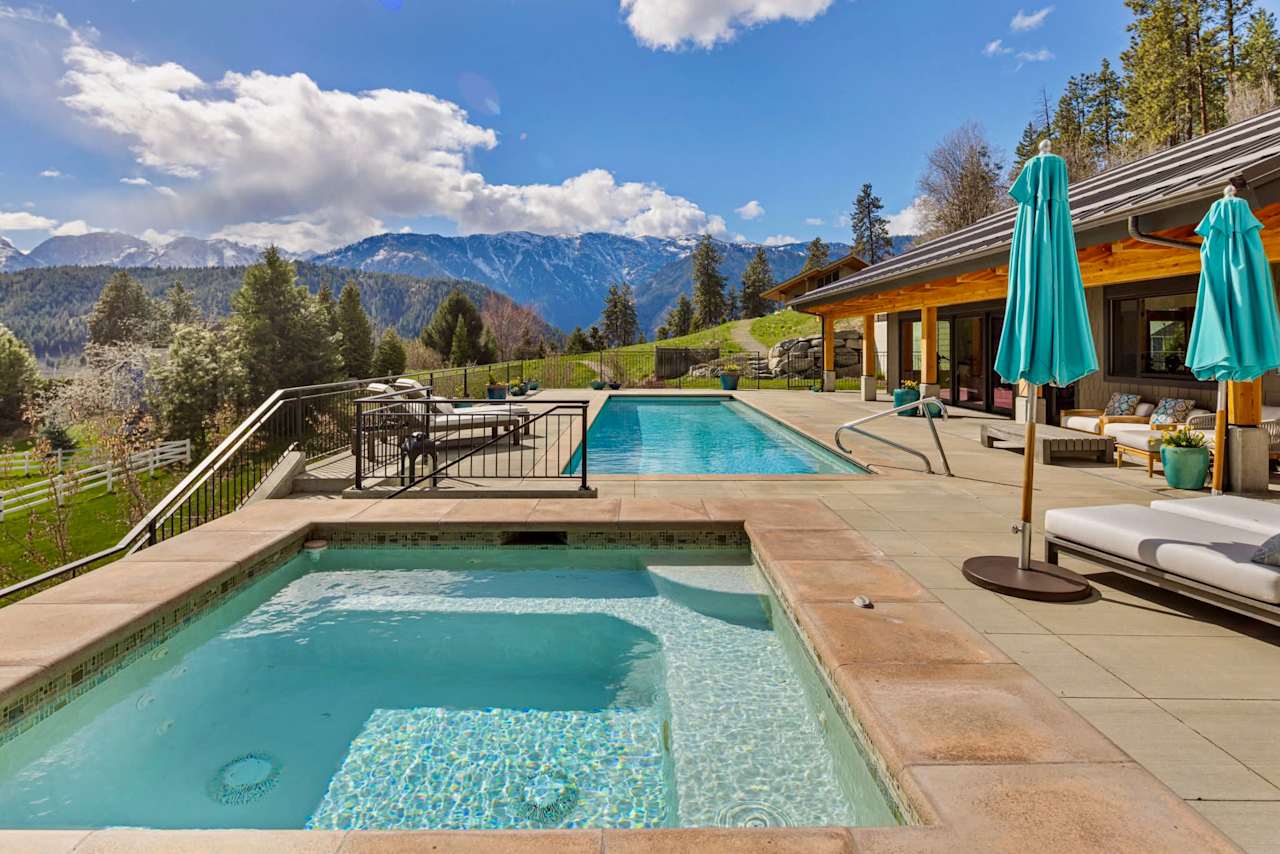 Situated on 4.57 acres, this NW Modern Home offers 3 bedrooms, 2.5 baths & 2-car garage. Step outside to a large, covered deck & enjoy views of the Enchantments & a 40 x 12 pool & hot tub. Nearby is a pool house with wet bar & 3/4 bath.